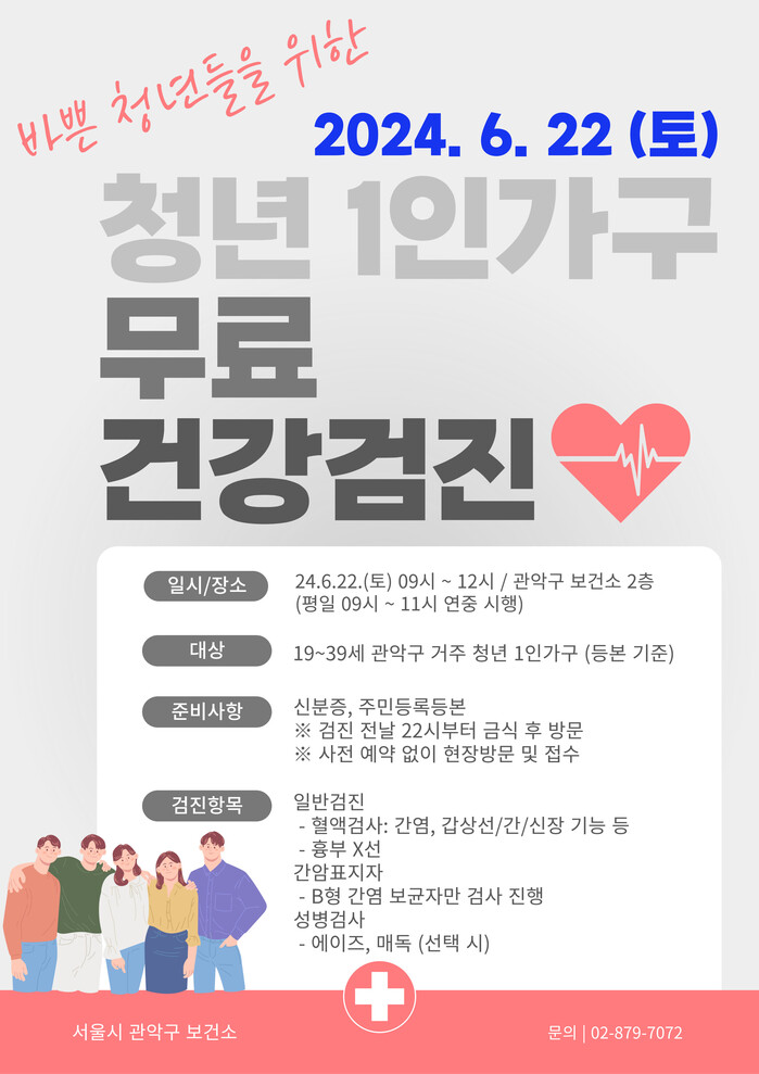 | ▲ 관악구 청년 1인가구 무료 건강검진 홍보 포스터 (사진=관악구청 제공) |