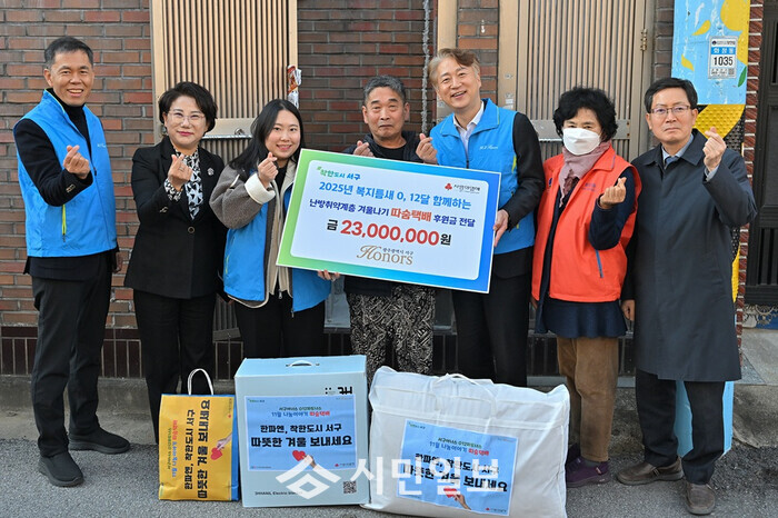 서구아너스는 28일 저소득·독거노인·장애인 가정 등 돌봄이웃 922가구를 직접 찾아 전기·온수매트, 패딩, 겨울이불 등으로 구성된 방한 물품을 직접 전달했으며 이번 사업을 위해 후원금 2300만 원을 지원했다.
