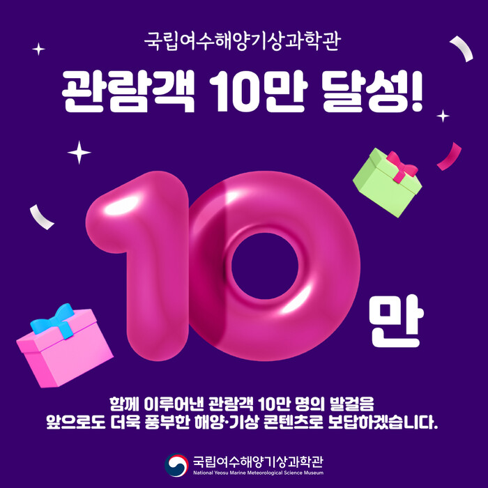 이날 10만 번째 방문객은 “현장 체험학습으로 아이들과 함께 방문했는데, 뜻밖에 10만 번째 주인공이 되어 매우 기쁘다”고 소감을 전했다.