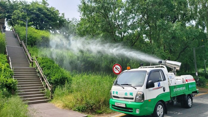 공원 20개소, 양재천·탄천·세곡천 일대, 주거취약시설(구룡마을, 달터마을, 수정마을, 재건마을) 등 외부 공간에는 다목적 방제 차량 2대를 활용해 주 1회 집중 방역을 실시하고 있다. 또 해충 방역 신고센터를 운영해 올해 상반기 739건의 모기 처리 민원을 신속하게 처리했다.