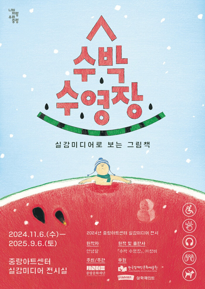 | ▲ 실감미디어로 보는 그림책-수박수영장 전시 포스터. (사진=중랑구청 제공) |