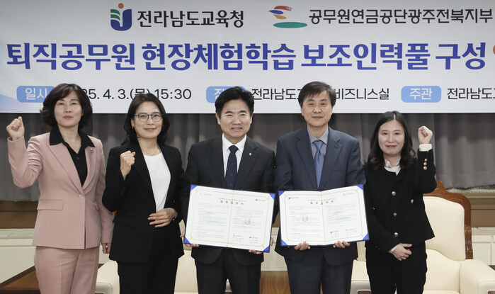 협약에 따라 공무원연금공단 광주전북지부는 현장체험학습 보조인력풀을 구성해 제공하고, 전라남도교육청은 이를 학교에 안내할 예정이다.