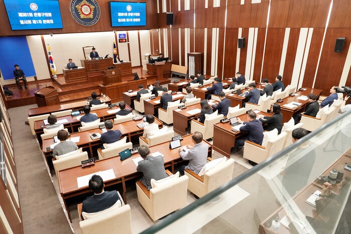 기노만 의장은 개회사를 통해 “기상이변으로 폭우와 폭염이 지구촌 곳곳에서 발생하고 있다”고 말하며, “은평구는 구민들의 피해를 최소화하고자 풍수해 보험사업 및 빗물받이 주변 대청소 등을 추진하고 있으며, 폭염특보 시 무더위쉼터를 연장·야간쉼터로 연계 운영 중이다”라고 전했다.