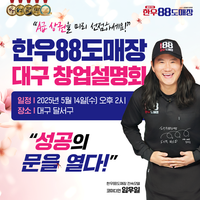 이어 “이번 창업설명회에 방문하셔서 한우88도매장에 대한 궁금증을 해소하는 시간이 되시길 바란다”라며 “창업설명회는 외식 창업에 관심을 가지고 있는 예비 창업자 누구나 참가할 수 있으며, 참가 신청은 한우88도매장 공식 홈페이지 팝업창을 통해 확인 가능하다”라고 전했다.