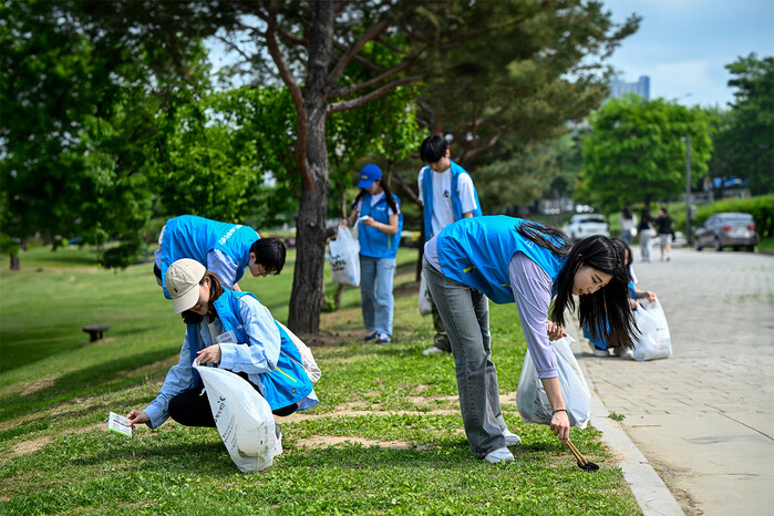 이번 환경정화 활동은 봄철 나들이객으로 붐볐던 여의도 한강공원에서 진행됐다. 봉사자들은 원효대교 남단부터 여의하류IC 교차로까지의 왕복 5km 구간을 함께 걸으며 쓰레기를 수거하는 플로깅(Plogging) 활동에 참여했다.