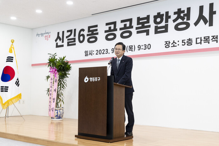 한편 지난 21일 신길6동 공공복합청사 5층 다목적 강당에서 개청식이 열렸다. 최호권 구청장을 비롯해 당협위원장, 구의원, 주민 등 약 100명이 참석해 공공복합청사 개청을 축하하는 자리를 가졌다.