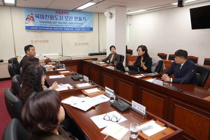 [오산=김정수 기자] 경기 오산시의회 의원연구단체 ‘육아친화도시 오산만들기’의 전예슬 대표의원이 최근 육아친화도시 조성을 위한 타운홀미팅을 개최하고 육아정책 관련 기관장 및 관계 공무원과 정책 방향을 논의했다.