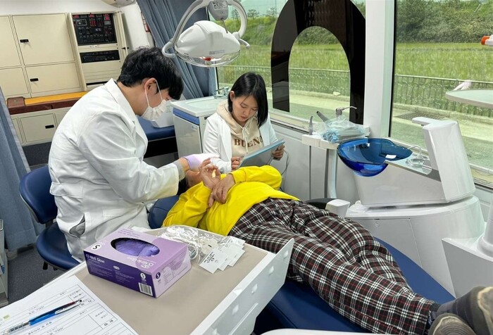 농촌왕진버스에서는 농작업 질환을 포함해 양ㆍ한방 진료, 구강검진, 검안 및 돋보기 추천 등 의료서비스를 제공한다.