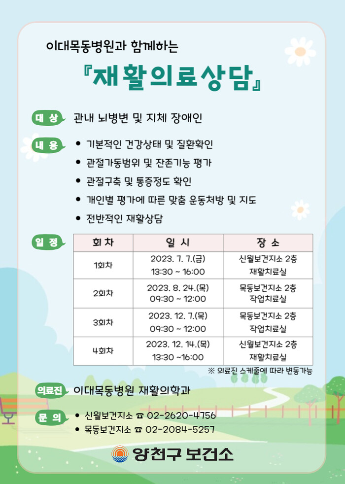 | ▲ 양천구, 일대일 맞춤 재활의료상담 홍보 이미지 (사진=양천구청 제공) |