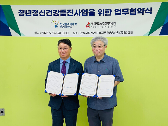 이해춘 학장은 “이번 협약을 통해 청년층의 정신건강 문제를 조기에 발견하고 지역사회와 함께 해결할 수 있는 기반을 마련했다”며 “학생들의 안전하고 건강한 성장을 위해 적극적으로 지원할 것”이라고 밝혔다.