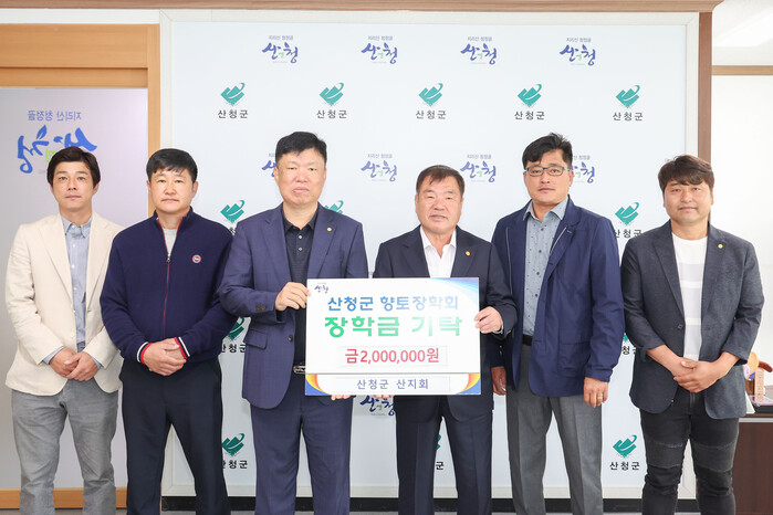 산청군 산지회는 지난 2012년부터 해마다 지역 인재 육성을 위해 장학금을 전달해 올해까지 총 2400만원을 기탁했다.
