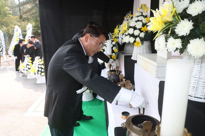 이날 행사에는 시의회 김기정 의장, 정영모·박현수·이찬용 의원, 주요내빈 및 관계자 등이 참석했으며, 종교의식을 시작으로 이요림 한국자유총연맹 수원시지회장의 추념사, 김 의장 추도사에 이어 조시, 조가, 헌화, 조총 순으로 진행됐다.