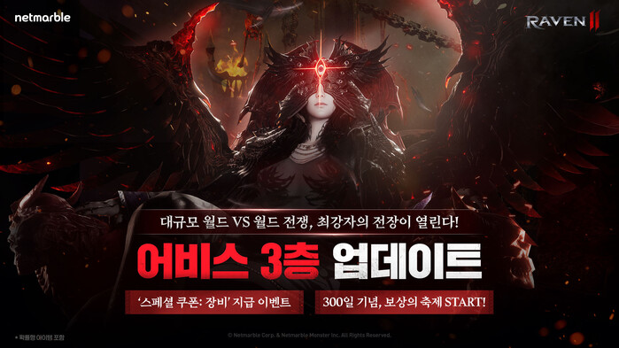[시민일보 = 여영준 기자] 넷마블은 지난 26일 블록버스터 MMORPG ‘레이븐2’(개발사 넷마블몬스터)에 대규모 월드 콘텐츠 ‘어비스 3층’ 등 다양한 업데이트를 실시했다고 밝혔다.