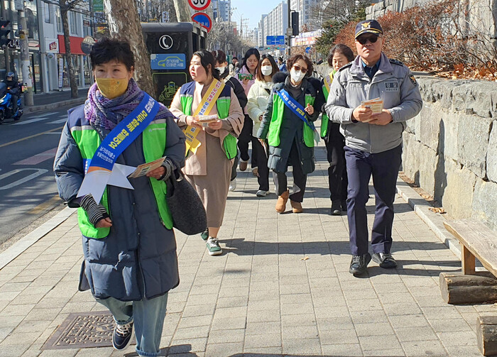 [시민일보 = 이대우 기자] 서대문구 남가좌2동(동장 김윤정)은 동 자원봉사캠프(캠프장 차경미)가 최근 남가좌파출소(소장 김상동)와 함께 명지대학교 앞에서 전동킥보드(PM) 안전캠페인을 실시했다.