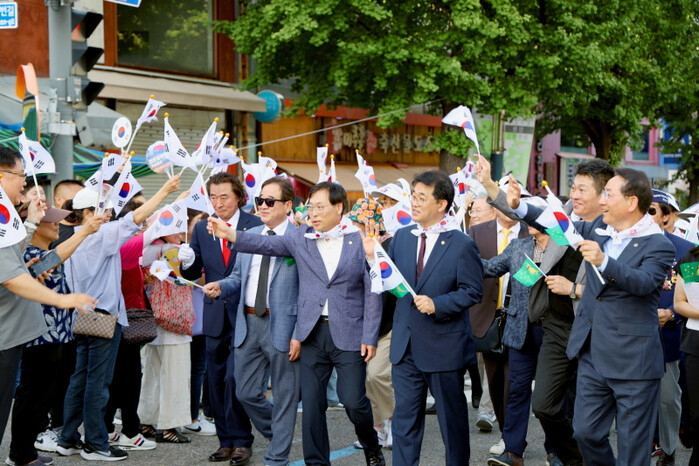 이어 참전용사를 비롯해 군 장병, 어린이합창단, 외국인 유학생 등이 함께하는 거리퍼레이드와 함께 중구청 앞에서는 인천시 수복 기념식 재현행사가 진행됐다.