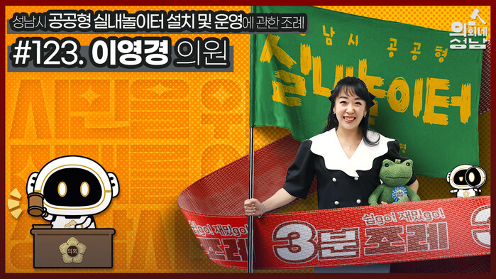 이번에 소개된 조례는 이영경 의원 등 15명이 발의한‘성남시 공공형 실내놀이터 설치 및 운영에 관한 조례’다. 이 조례는 성남시 공공형 실내놀이터의 설치와 운영에 관한 사항을 규정함으로써 어린이에게 놀이공간을 제공하여 행복한 놀이문화 지원을 목적으로 한다. 이번 조례로 지역 사회 어린이들이 건강하게 성장할 수 있는 환경을 조성하고, 부모님들에게는 경제적 부담을 줄이면서도 아이들이 안전하고 건강하게 성장할 수 있는 아동 친화 도시 환경을 제공할 수 있을 것이라 기대하고 있다. 이 조례는 2023년 12월 11일부터 시행 중이다.