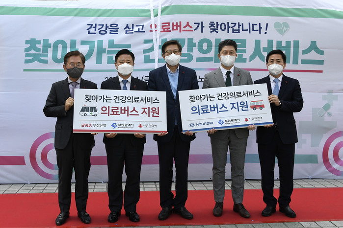 [시민일보 = 여영준 기자] BNK부산은행은 1일 오후 부산시노인종합복지관에서 부산시, 현대자동차그룹, 한국주택금융공사, 주택도시보증공사, 부산사회복지공동모금회와 찾아가는 건강의료서비스 ‘의료버스’ 개통식을 실시했다고 밝혔다.