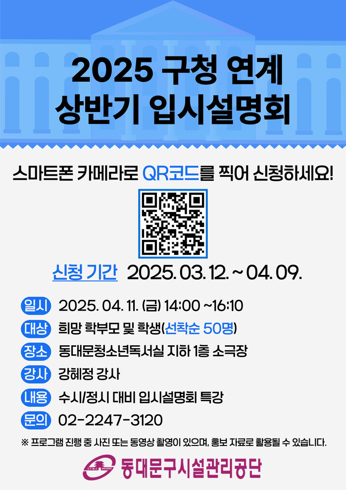 | ▲ 동대문구시설관리공단 동대문청소년독서실 “2025 구청 연계 입시설명회” 포스터. |