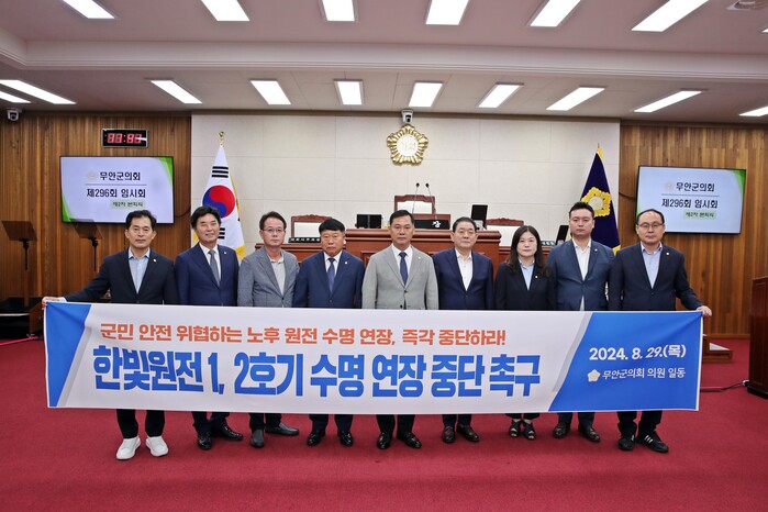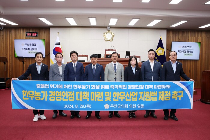 쌀·한우가격 안정 대책 마련 촉구 [무안=황승순 기자]무안군의회(의장 이호성)가 8월 29일 열린 제296회 임시회 제2차 본회의에서 ‘한빛원전 1, 2호기 수명 연장 중단 촉구’와 ‘한우농가 경영안정 대책 마련 및 한우산업 지원법 제정 촉구’, ‘수확기 쌀값 안정화 대책 마련 촉구’ 등 3건의 건의안을 채택하며 당면 현안에 대한 목소리를 높였다.