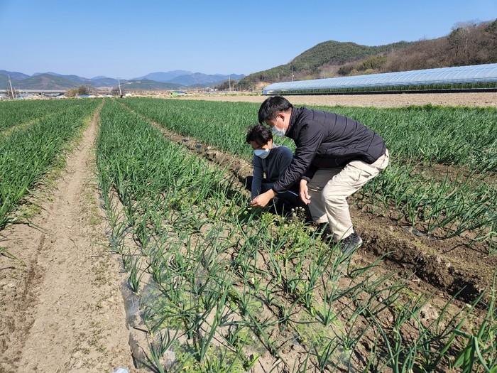 산청군농업기술센터가 양파 노균병 발생으로 인한 2차 감염 예방을 당부하고 나섰다.
