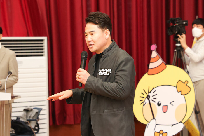 서울 도봉구가 최근 ‘제1기 도봉구 구민기자단 위촉식’을 개최했다. 사진은 이날 위촉식에 참석한 오언석 구청장이 구민기자단의 활동을 격려하고 있는 모습. (사진=도봉구청 제공)