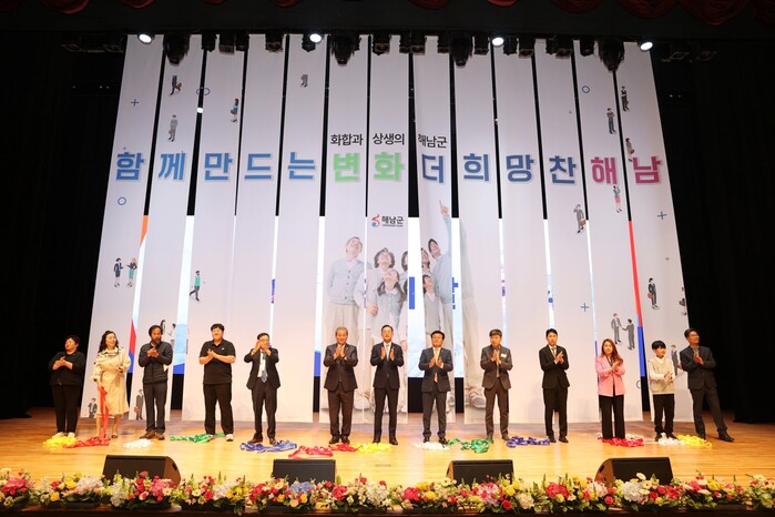 명현관 군수는 기념사를 통해 “민선8기의 반환점을 지나는 올해는 해남의 20년, 30년을 좌우하는 중요한 시기가 될 것이다”라며 “우리 해남의 미래세대는 더 이상 땅끝이 아닌 대한민국의 중심, 유라시아의 시작이라는 자긍심을 가지고 당당히 꿈을 펼쳐 나갈 수 있도록 장기성장의 동력을 육성해 나가겠다”고 천명했다.