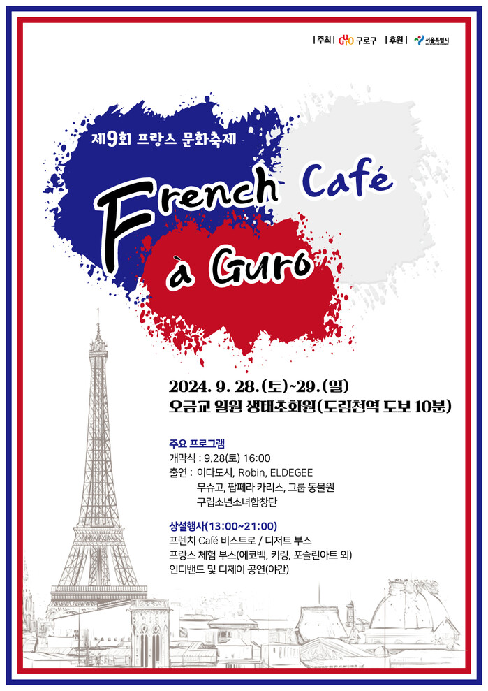 [시민일보 = 박소진 기자] 서울 구로구(문헌일 구청장)가 오는 28~29일 안양천 스마트 정원에서 ‘제9회 프랑스 문화축제’를 개최한다고 5일 밝혔다.