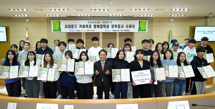 [시민일보 = 이대우 기자] 서울 서대문구(구청장 이성헌)가 하반기 ‘서대문구 카페폭포 행복장학생’ 54명을 선발, 총 1억원의 장학금을 전달했다.