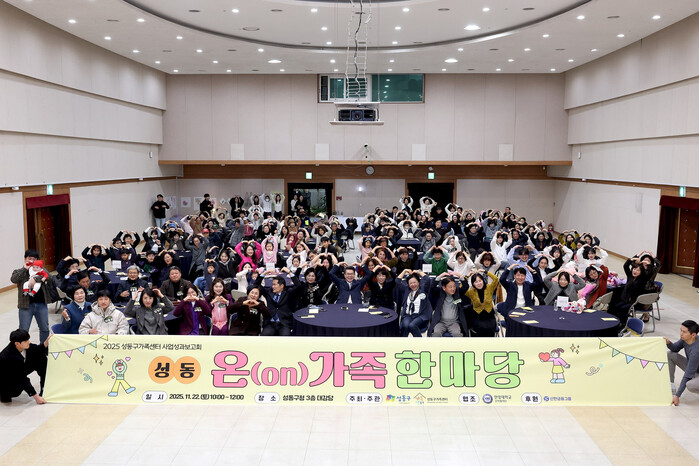 [시민일보 = 박소진 기자] 성동구(구청장 정원오)가 최근 구청에서 150여명의 가족이 참여한 가운데 2025년 성동구가족센터 성과보고회 ‘성동온(on)가족한마당’을 성황리에 개최했다고 8일 밝혔다.