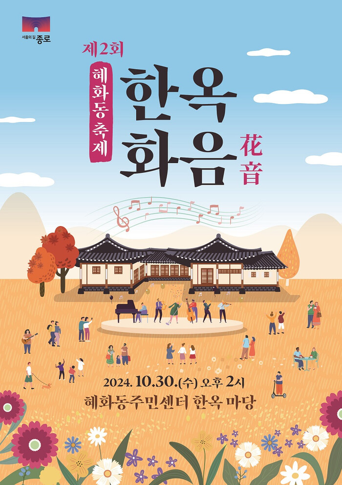 [시민일보 = 이대우 기자] 종로구(구청장 정문헌) 혜화동이 10월 30일 「혜화동 한옥 화음(花音) 축제」를 개최한다.