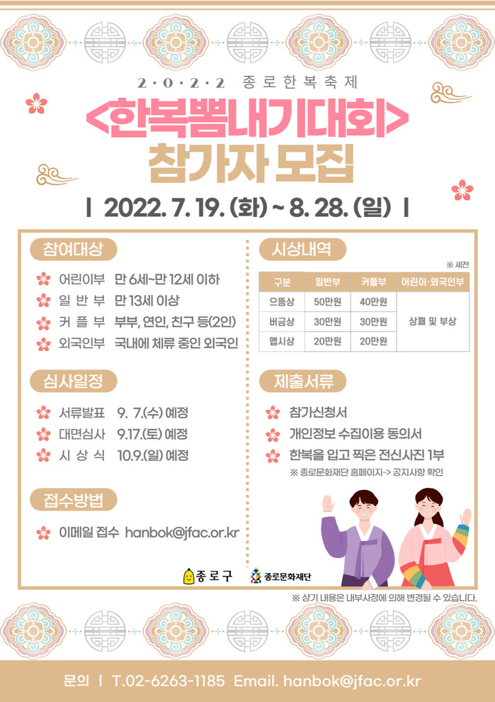 | ▲ 2022 한복뽐내기대회 포스터 (사진제공=종로구청) |