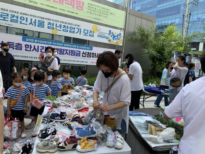 최근 서울형 모아어린이집 영등포구 권역인 양평동 STAR 공동체 4곳 어린이집(늘해랑·반디·양평2동·한사랑)은 지역사회 간 '사랑 나누기'를 주제로 ‘다(多)사랑 바자회’를 진행했다. 이날 바자회에서는 각 어린이집에서 기부한 책·의류 등과 양평동 STAR 공동체에서 직접 준비한 과자·천연비누 등의 판매가 이뤄졌다. 사진은 바자회가 진행 중인 있는 모습. (사진제공=영등포구청)