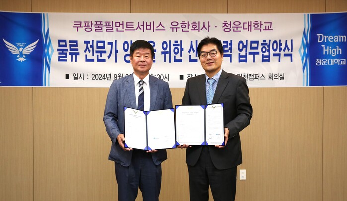 [시민일보 = 이대우 기자] 쿠팡풀필먼트서비스(이하 CFS)가 9일 청운대학교와 물류 전문 인재 양성을 위한 업무협약(MOU)을 체결했다고 10일 밝혔다.