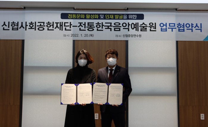 [시민일보 = 여영준 기자] 신협사회공헌재단(이하 재단)이 지난 20일, 대전 소재 신협중앙연수원에서 전통한국음악예술원과 업무협약을 체결하고 전통문화예술 활성화와 국악 영재발굴 등을 위해 후원금 1억4000여만원을 전달했다.