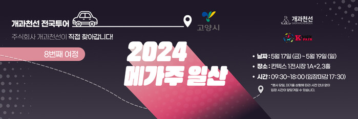 국내 최대 규모의 펫 산업 박람회가 일산 킨텍스 1 전시장에서 개최된다. 2024 일산 메가주 (케이펫페어)는 2024.05.17.(금) ~ 2024.05.19.(일) 총 3일 동안 진행될 예정이다.
