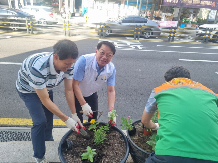 이번 행사는 본격적인 가을을 맞아 인도 화분에 계절 꽃을 심어 거리를 정비하고, 주민들에게 더 쾌적하고 따뜻한 보행 환경을 제공하기 위해 마련됐다.