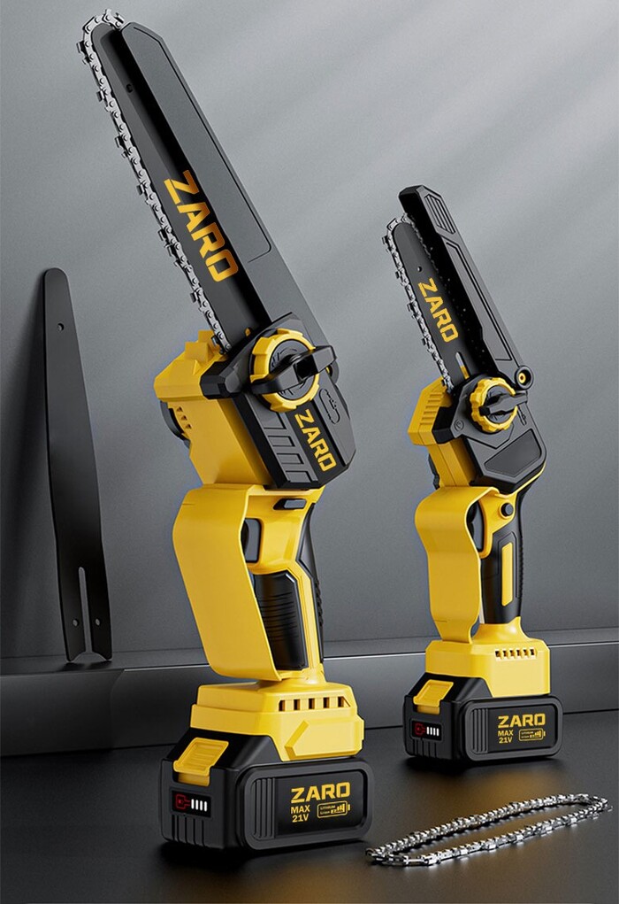 자르오의 전문가용 전기톱에는 배터리 OPS센서 뿐만 아니라 오일 자동 급유 시스템, 체인 장력 조절 기능까지 탑재되었다. 아울러 전기차에 적용되는 6극 브러시리쉬 모터를 사용하여 힘을 2배 이상 높인 것뿐만 아니라, 배터리 잔량 표시 기능을 넣어 한층 사용자를 배려하였다.