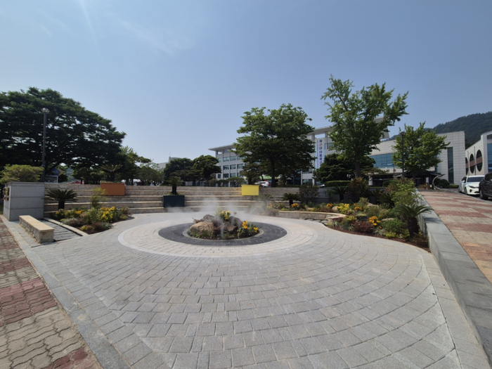 휴식 공간에는 ▲원형 정원과 안개분수 ▲계절감 있는 화초류ㆍ관목 식재 화단 ▲다채로운 열대풍 화분과 화사한 관람석(스탠드 계단) 등이 설치됐다.