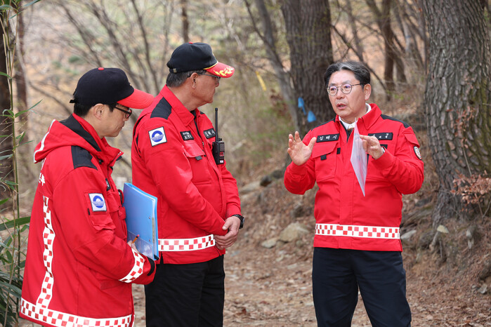 홍태용 시장은 지난 30일 장유3동 신안계곡 등 산불 취약지역을 점검하며 산불전문예방진화대, 지역 산불감시원, 시청 현장 근무 직원을 만나 철저한 산불 예방 활동을 당부하고 격려했다. 홍 시장은 앞서 지난 27일 산불 조심 호소문을 발표했다.