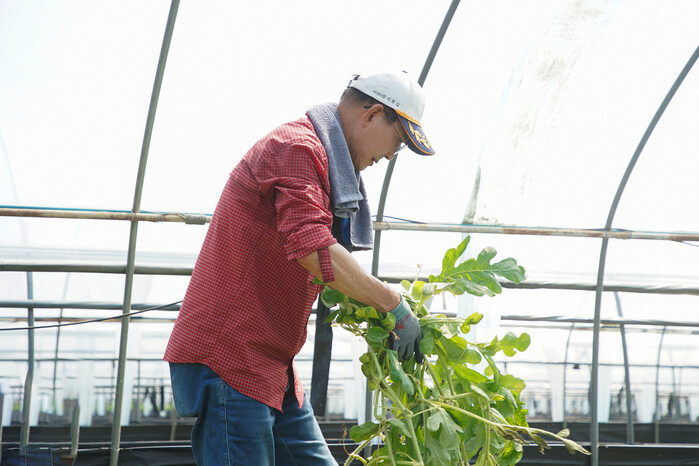 이완섭 충남 서산시장이 공직자들과 함께 21일 이웃 지자체인 부여군 수해 복구에 발 벗고 나서 부여군 규암면 일원에서 무너진 비닐하우스 축대 제거 및 수해 농작물 정리 활동을 펼쳤다. 사진은 이 시장이 수해 지역에서 공직자들과 함께 수해복구작업을 하는 모습. (사진=서산시청 제공)