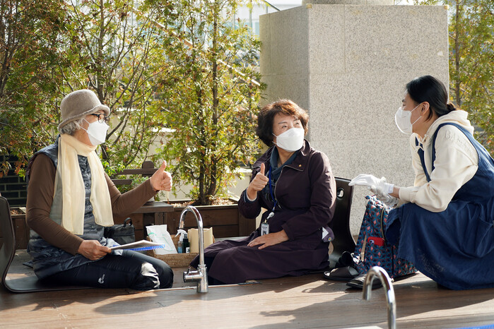 | ▲ 약초 족욕 즐기는 구민들(서울한방진흥센터 족욕 체험장). (사진=동대문구청 제공) |