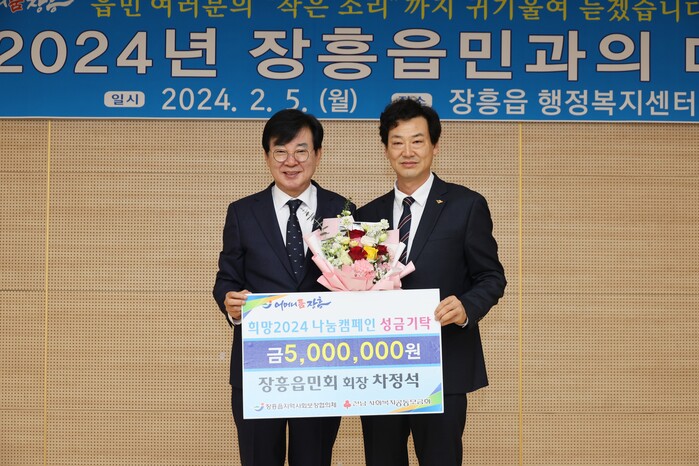 이날 행사에서 차정석 장흥읍민회장이 500만원, 장흥전기 300만원, 정토건설에서 200만원을 지정 기탁했다.