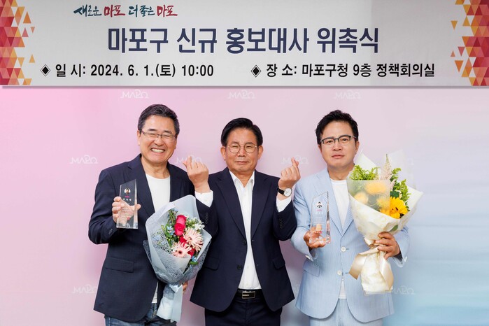 [시민일보 = 변은선 기자] 서울 마포구(구청장 박강수)가 최근 가수 권인하와 MC 조영구를 마포의 얼굴인 ‘마포구 홍보대사’로 새로 위촉했다.
