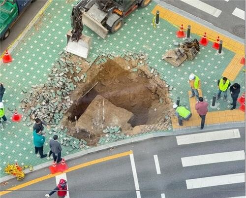 구청은 싱크홀을 메우고 있으며, 현재는 복구가 마무리 단계에 들어선 상태다.