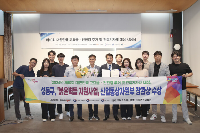 에너지경제신문이 주최하고 국토교통부, 산업통상자원부, 환경부가 후원하는 이번 시상식은 고효율 및 친환경 녹색건축물을 활성화하고, 녹색 건축문화와 건설 기술 발전에 기여한 공공기관과 민간기업을 대상으로 열렸다. 성동구는 성수동만의 독특한 도시문화 경관을 보존하고 발전시키기 위해 '붉은벽돌 건축물 지원사업'을 추진해 왔으며, 그 노력을 인정받아 일반 및 공공건축 부문에서 산업통상부 장관상을 수상하는 영예를 안았다.