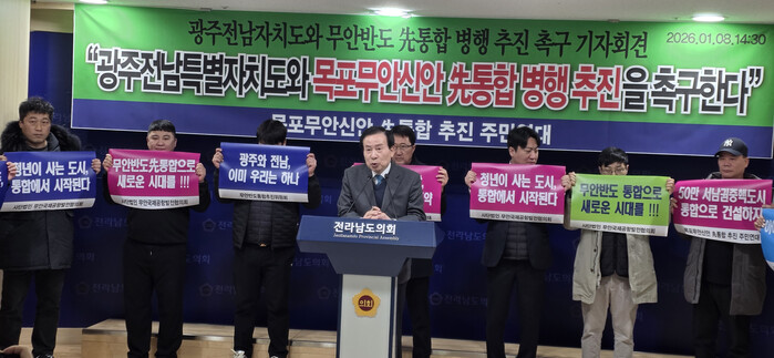 박홍률 공동대표는 “지금 광주광역시와 전라남도가 ‘광주전남 초광역 특별자치시(도)’ 설치를 위한 ‘광주전남 행정통합’이 급물살을 타고 있다”라며 “9일 이재명 대통령과 강기정 광주광역시장, 김영록 전남지사 그리고 광주전남 국회의원들이 한자리에 모여 행정통합과 관련한 본격적인 큰 그림을 그릴 예정”이라고 촉구 배경을 설명했다.