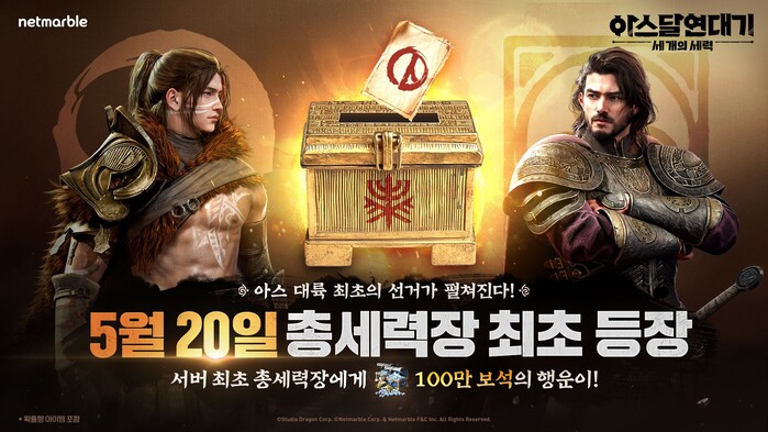 [시민일보 = 여영준 기자] 넷마블은 MMORPG <아스달 연대기: 세 개의 세력>에서 오는 20일 서버별 최초 총세력장을 결정하는 첫 선거를 개최하고, 다양한 이벤트를 진행한다고 17일 밝혔다.