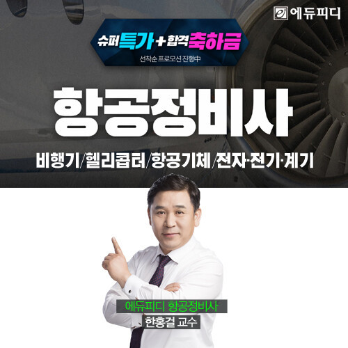 이에 에듀피디는 항공정비사가 되기 위해 반드시 필요한 비행기, 헬리콥터, 항공기체, 전자·전기·계기 각 기종 별 항공정비 자격증 취득시험을 준비할 수 있는 ‘합격패키지’ 강좌를 약 80% 슈퍼특가 할인 및 합격 시 ‘최대 20만 원 합격축하금’ 지원 혜택과 함께 오픈하고 필기(학과)시험 전 과목 ‘문제풀이’ 구성의 학습으로 기획된 커리큘럼을 선보인다.