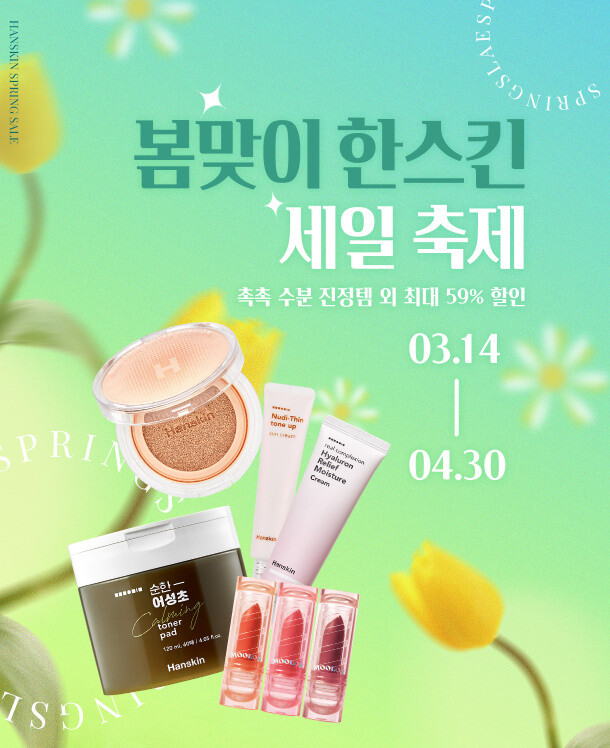 이번 행사는 건조한 봄을 맞이해 수분케어에 집중하는 소비자들에게 도움을 주고자 기획된 이벤트로, 피부 보습부터 메이크업에 이르기까지 다양한 한스킨의 베스트 아이템을 저렴한 행사가에 만날 수 있다.