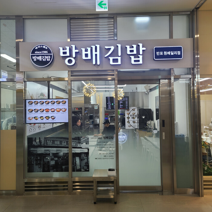 방배김밥은 다양한 김밥메뉴를 제공하고 있으며 전문 쉐프가 개발한 사이드 메뉴를 접목시켜 만든 카폐형 매장과 테이크아웃 및 배달 전문매장인 T&D형 매장이 있다. 이번에 오픈한 방배김밥 반포원베일리점은 T&D형 매장이다.